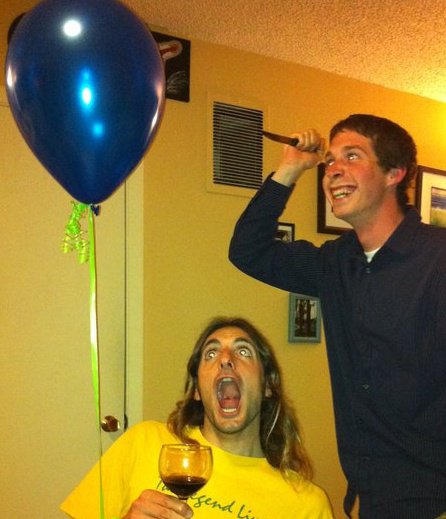 Two crazy guys having a crazy time.
