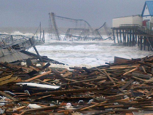 The remnants of the once grand Casino Pier, Seaside Heights, New Jersey. Yes that is a roller coaster in the ocean.