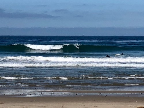 My first mistake was having high hopes for today. Between the forecasts and buoy readings I went to bed thinking I might score a few fun ones today. Despite a healthy dose of wind swell and some long period south swell it was rather tiny. To make matters worse the shape at River Mouth was atrocious. The only some what redeemable ones were coming in at the bar right in front of the mouth, where there were maybe two goods ones very fifteen minutes with easily fifteen guys out. I met Angers over at Shores, though it had potential it was too small for the bars. In hindsight we probably should have paddled there. Instead we found a closed out peak just north of the crowded one in order to practice safe social distancing. All of the beach parking lots at the Harbor were closed. In order to access the beach one has to park on the street. There was definitely an increased police presence yet at the moment they were not hassling beach goers or surfers. I am sure if people keep crowding peaks it is only a matter of time. There are miles of beach from the Knoll lot all the way to the Power Plant. If the peak you want to surf is already maxed out please move on to another for all of our sake and spread out while at said peaks. I wanted to go surf the River bar, but I am not going to be part of the problem. It wasn’t that much better there anyway.