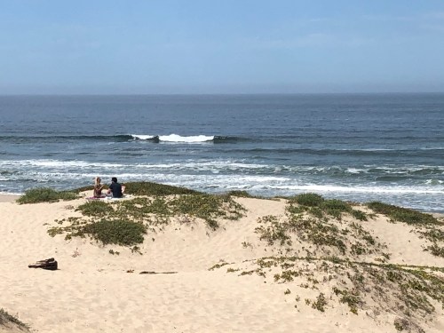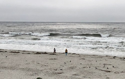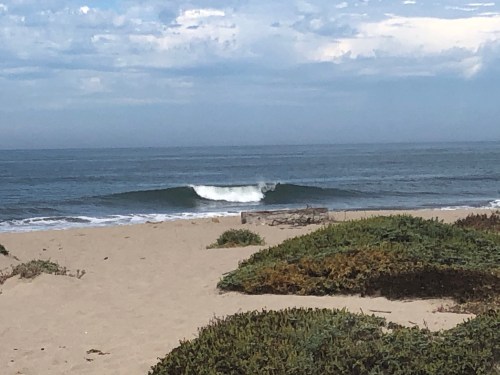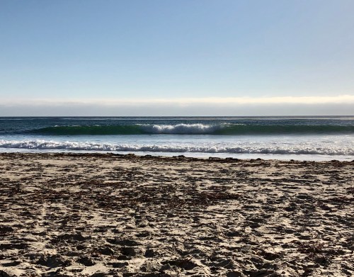 I had hoped if the conditions were right to head back up north and revisit a few set ups I thought may have had potential with the new windswell. The wind was on it from first light just making another day of blown out conditions. The plan was to back down the the coast to Monterey where we were going to stay the night. Some how I made a wrong turn just south of Bodega Bay, ending up in the town of Petaluma this chill dairy town that a good friend of my wife actually grew up in. We decided to stop for breakfast at this excellent little place called Hollies Cafe. If you are ever in that town it is totally worth a stop. Luckily for us the 101 goes right past the town leaving us not off track at all. We decided to catch the route 1 again at Moss Landing. Traffic was terrible and the place was the most crowded I have ever seen it. The wind swell was getting in, but it was all over the place and in my opinion not worth the potential shark attack. We tried to rent a kayak but they were all booked up so on to Monterey we went. Not before I got stuck in a sand bank on the way into the Moss Landing beach park. A little bit of pushing and we were on our way. My plan was to get some waves at Asilomar in the evening. It was solid chest to head high wind swell. It was also all over the place and totally unfocused burgers up and down the beach with lots of currents and rips. I got a few, though overall it was just lots of work for a way limited reward. My wife and I wanted to get a nice dinner out for our last night. Between the thick almost rain like marine layer and the light onshore wind it was way too cold to be comfortable dining outside. Instead we stopped at a Safeway and got some fried chicken and salad. You don’t realize how much you miss something as simple as a nice meal all dressed up at a restaurant till it is gone. I do however enjoy the savings.
