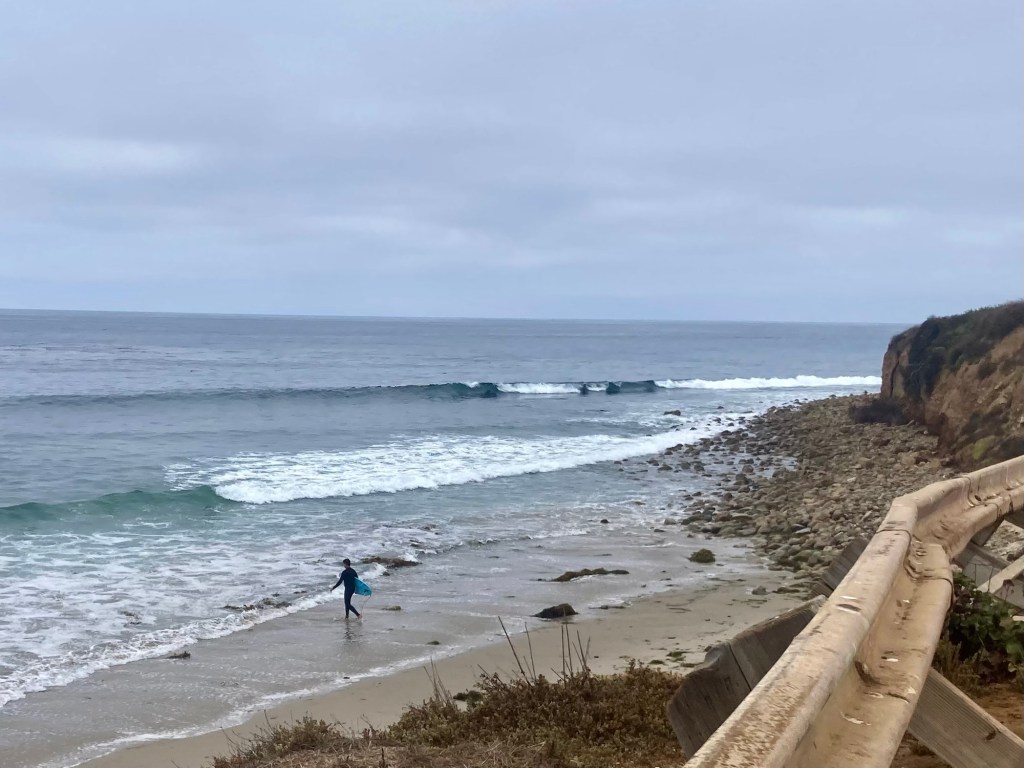 I joke about it all the time but at Hueneme if you see that it’s good then you’re probably too late. This morning I saw some bangers off the south side of the Pier. Stoked I parked and walked up, but as soon as I paddled whatever I had seen was gone. Instead I found myself waiting for the odd ball inconsistent pier bowl right that was basically the equivalent of hunting for a unicorn. Then the life guards paddled out ten strong on their soft tops for their PT break and decided to sit right on me. Frustrated I took a chest high close out and pulled in for the glory. I ended up going over the falls with my board. My back foot hit my center fin and ripped my bootie. Not that I even needed boots since the water has to be 72 F. I spent my afternoon doing ding repair. It was also Adagio’s two month birthday.
