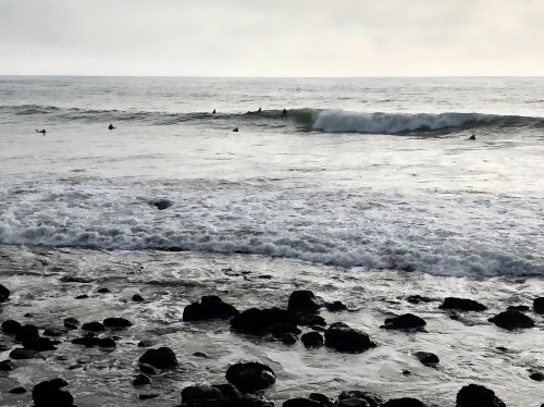I was supposed to have the day off, when my boss called and asked me to go pick up all the equipment from yesterday’s drop off. Drop was in Carp so I figured I could grab the stuff, take the catering truck surfing and then head back to the Goleta kitchen unpack and repack for our corporate gig tomorrow morning. My lady decided to join me and had a fun look into the ridiculous amount of schlepping I do on a day to day basis. At this point my job is like thirty percent cooking, and seventy percent logistics and schlepping. Oh and zero percent profitable. I suppose that is always the plight of the subcontractor. Rincon was a bit cut up with the strange WNW to fluctuating ENE winds and bit windswelly too. The Cove looked flawless and super fun. It was also a lumberyard packed full of nine foot plus boards. I wasn’t going to be able to get a wave in edge wise in that pack. Up top has some fun looking short peaks with a light crowd. I was not really in the mood to go on a goose chase and didn’t want to put unnecessary miles on the catering truck either thus I just paddled. A bunch of other guys must have had the same idea cause as soon as I paddled so did around twenty other cats. Everyone was a ripper or wannabe and it became a shit fight for waves that weren’t really connecting or all that ride-able. It was especially hard on the back hand. It didn’t help was ten to twenty years the senior to the pack out there either. Now I understand why all the guy’s in their late thirties, early forties always hated me. In my defense there was a bit of gap in numbers from my generation thanks to the lack of popularity of surfing in the nineties. That next generation was strong and the one under them even stronger. I’m just an old man complaining about getting old these days. I made the most of it before packing it in. Its going to a tough week ahead for me as I am looking at an easily seventy hour work week, but I’ll do what I can.