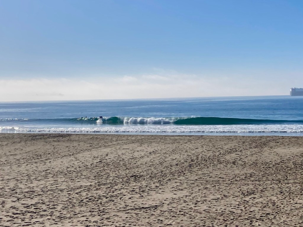 A new very long period WNW swell was supposed to be filling in. There was also a bit of late season south in the water. I had a look at Hueneme and saw fun looking chest high peaks with light offshore winds up and down the beach. Not wanting to bank on the afternoon I decided to paddle. It had the look that the place might turn on. I started basically lined up with Ventura Road on the north side of the Pier. There’s a decent high tide bar there. By the time I left I was surfing on the south side of the pier because of the day’s tide extremities. Jeffery showed up towards the end of my session and being a good friend I surfed a bit longer to keep himcompany. Ultimately it never turned on and was just your classic stretchy weird Hueneme day.