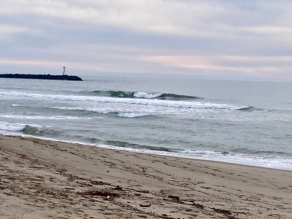 This morning was almost an exactly copy of yesterday except maybe a tad bit more stretched. Unfortunately the sand from the dredge project is filling in fast and has moved down to the pier. Currently the inner bar is completely exposed even on high tide leaving a deep water to shallow shelf sort of thing happening, which is mostly causing the waves to be dumpy. The days of the fun pier bar may be over for a while. I guess I’ll have to go back to strand. My afternoon was spent sanding the boards that I had just glassed.