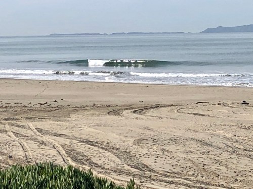 I was supposed to work today. Upon waking I found that it was canceled. With no work I cruised south. There was some steep swell on the buoys and I figured maybe despite the six foot high tide at ten there may be something to ride at the beaches. The Harbor had waves. They have started the spring dredging of the shipping channel dumping really dirty sediment on the beach and in the water. The smell of the water was nauseating just standing on the dunes checking it. I headed to Strand where it was solid, but a bit fat and wonky not to mention some on shore winds. It was surf-able though not optimal. A few guys were paddling the North End and in hindsight that is where I should have went as well. Instead I was hoping that there was enough WNW in the water to allow for the points to be good. They were tiny. I didn’t feel like driving all the way back to Strand. AJ was at Emma getting a few on his fish and I decided to join him. The tide was going out fast and draining to a -1.5. It didn’t take long till it was way too drained to even surf. I did get a few left hits I was happy with and one little right tube. The lesson of the day is “A bird in the hand is better then two in the bush.