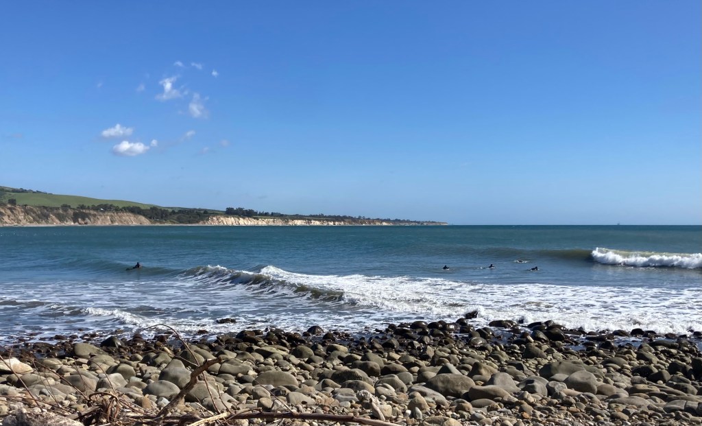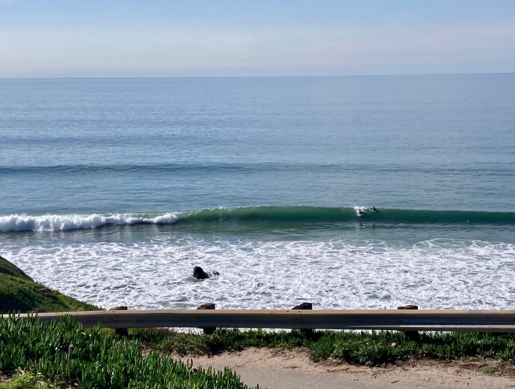 If I have anything thing scheduled for months ahead of time the Ocean never fails to send good waves in the window of that appointment. I had thing in Oxnard at 11am. Leaving me either the early morning or the afternoon. Strand was pretty much the only place I could surf before eleven and it would have to be pretty darn good at that. The surf was sold eight foot bombers. The faces were clean, but it was still very raw from the coastal gale that blew over the past twenty four hours. I saw a few do-able ones sparking my interest. I also saw more beatings then good rides. Considering my short time window I passed hoping for an afternoon session at one of the points. The word was Rincon had waves. North was the call. While driving up the 101 towards Rincon I noticed that Pitas had a fair amount of white water on it and decided to give it a look. The lines were stretched and somewhat disorganized up top. Some wrap into the Faria section was prevalent. The crowd was light and I was running out of time thus I paddled hoping for the best. I would have had more time to surf except I lost a half hour on the phone in the parking lot reporting fraudulent use of my debit card. Turns out some degenerate ordered $200 worth of CBD on my card. Though sloppy and broken up there were some runners out there. I even tucked into a barrel though I wasn’t able to come out. As it got later in the afternoon the crowd grew larger. The current sweeping down the point was stiff enough to cycle out the pack allowing for plenty of opportunity to catch waves. I wouldn’t call it good Pitas, but I had fun. On the walk back to my car up the point I found lots of sea glass.