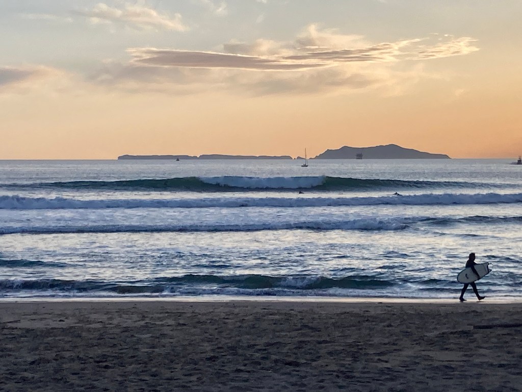 Today the first half of my day was completely booked up with obligations. I had a lunch for four hundred female athletes in Santa Barbara to work that encapsulated my morning and then had to pick up my old fried Ryan from the Santa Barbara airport at two. He used to live here in SB when I first moved out west years ago. Now Ryan lives in Texas. My wife and I have visited him out in Corpus Christi and he flew over to SB at the height of the pandemic to shoot our illegal wedding in April of 2020. We were stoked for his visit. Of course whenever I’m busy one can on the fact that the surf is going to be decent. The morning window at the Ship was one of the better sessions of the past few weeks. Such is life, don’t cry for me cause as you know I get plenty of waves on the daily. The event went fine as did the airport pick up. The points were all small on the way back down south. I got word Strand still had waves and the wind wasn’t all that bad. We stopped home, picked up Bizarro and cruised. The ship had chest plus waves, though a little tidy and some cross shore wind the conditions looked fun enough. We paddle and Biz shot water, the results of which came out great and can be viewed on mine and his Instagram accounts. The surf itself was rather weak, all over the place and hard to really get a good one. I can count on one had the amount of fun ones I caught. We surfed till dark then grabbed some dinner. Day one of Ryan’s stay in Lisanti Land was a success. Let’s see how well he can hang the rest of the week.