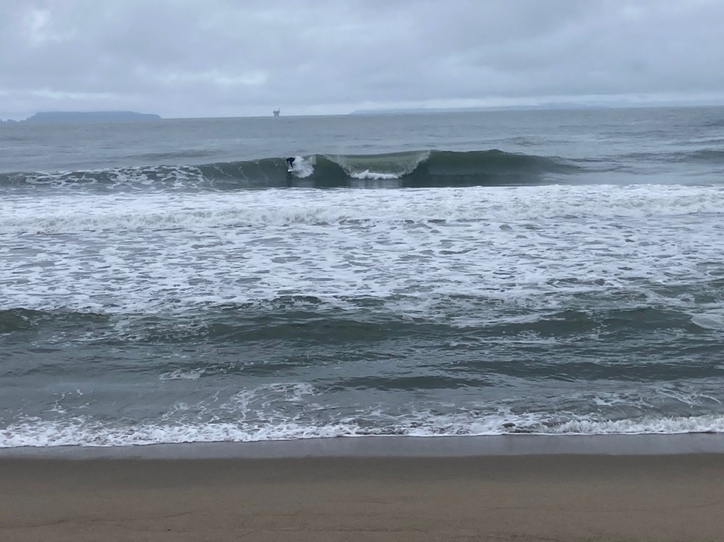 Another day of rain was upon us and with it came the usual dreaded south winds. Everywhere looked bad. I had ding work to handle, a stack of boards to pick up from the glasser and a stack of blanks to grab from the supplier. There were definitely enough tasks to occupy my time. I had a look at the Ship on my way home. Though on the small side there was a chest plus wave coming in and the wind was side-shore/offshore. I went home, dropped off all the boards and blanks, then loaded up my board and suit and headed back to Strand. I gave it one more quick look just to make sure the wind hadn’t changed. If anything it was even more offshore. I paddled and got a few fun waves. After about forty five minutes the wind turned stiff SW turning conditions to crap. I fought the good fight for another thirty minutes or so before throwing in the towel. I was at the very least stoked I surfed.