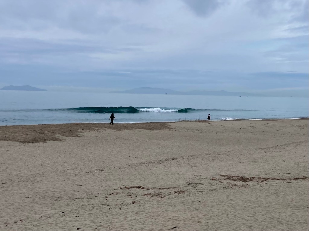 The weather has been so crazy the past few weeks it’s has become difficult to make the correct move. I should have went up to Rincon since I knew hard WNW wind was coming. Forecasts were saying light onshore till mid day. Strand was chest to head plus off the Ship. There was light WNW wind on it making things a tad sloppy. Word was Rincon and north were on the smaller side. Hoping to get an hour I jumped in off the the Ship. There were some powerful windswelly lefts peeling off the rocks. Once again I found myself a little under gunned. It didn’t matter cause within fifteen minutes of being out the wind turned hard WNW like a light switch completely trashing the surf. Immediately I was ensconced in full on victory at sea conditions. The wind was icy and the waves had basically become not surf-able. I cut my losses and took one in. I had plenty of errands to run and ding work to do the rest of the day.