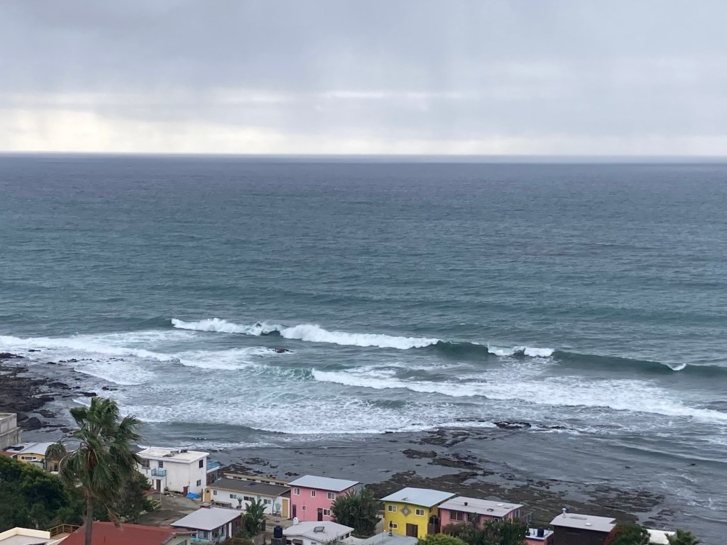 As I feared I woke up to gale force WNW winds. There was plenty of surf in the water but the ocean was a complete mess. Taking that into consideration there was no rush to get into Mexico. We ate some breakfast, played with Adagio one last time, stopped at the grocery store to get some provisions then around noon made our way to the border. On the way in I stupidly smiled and waved at one of the Federales and as a result we were stopped and our car was searched. Once in Tiajauna my wife and I were stoked to find out that the new skyway by pass from the city to coast was finished. This saves us easily thirty minutes. When the coast came into view the waves, though bombing were all torn up with onshore wind howling. Unfortunately there wasn’t adequate wind protection to allow for any place to be reasonably surf-able. With that reality we decided to stop at Puerto Nuevo to gouge ourselves with lobsters for lunch. After which we got to our vacation rental and there was no power. Supposedly the heavy rains from the night before had taken it out. Being it was Mexico there was no estimate to when service might be restored. With no surf and no power we decided to pop open a bottle of Champagne and watch the sunset from our balcony. No electricity once it got dark just meant we got to enjoy a romantic candle light dinner. Normally I would be completely frustrated not getting to surf but l was just happy to have some alone time with my wife. Photo taken from our vacation rental in Baja.
