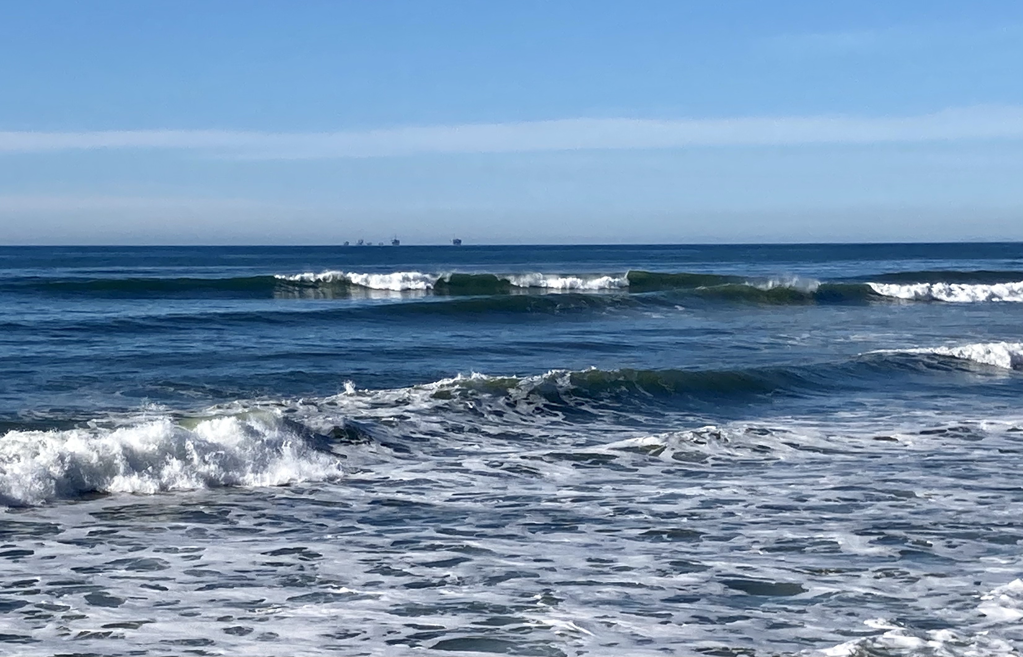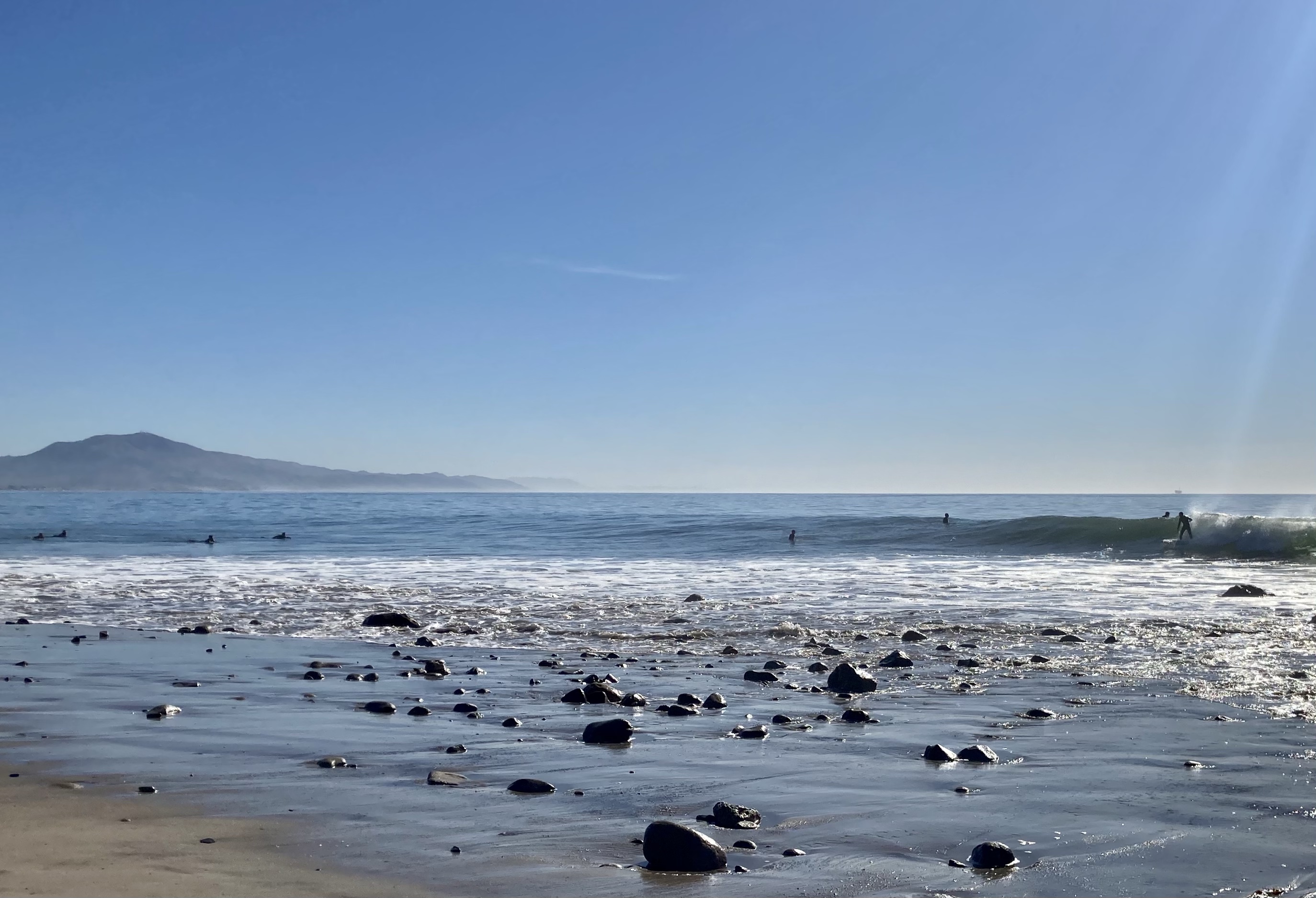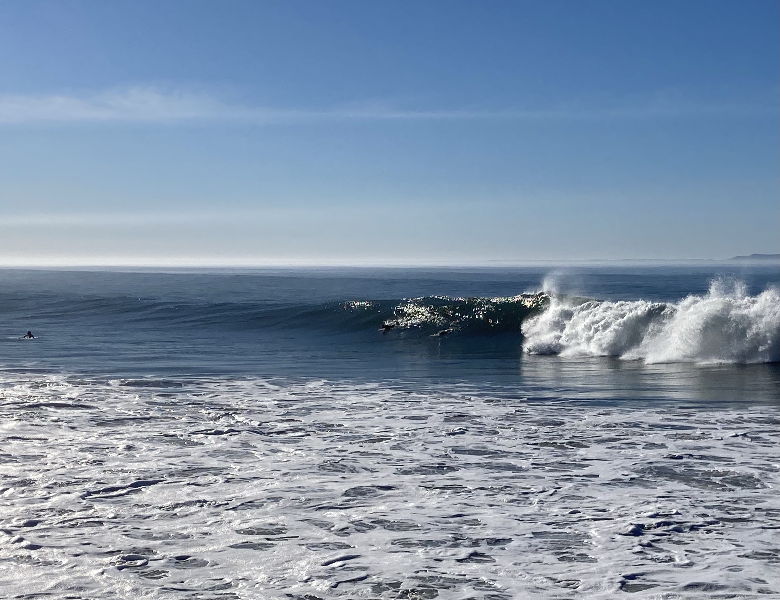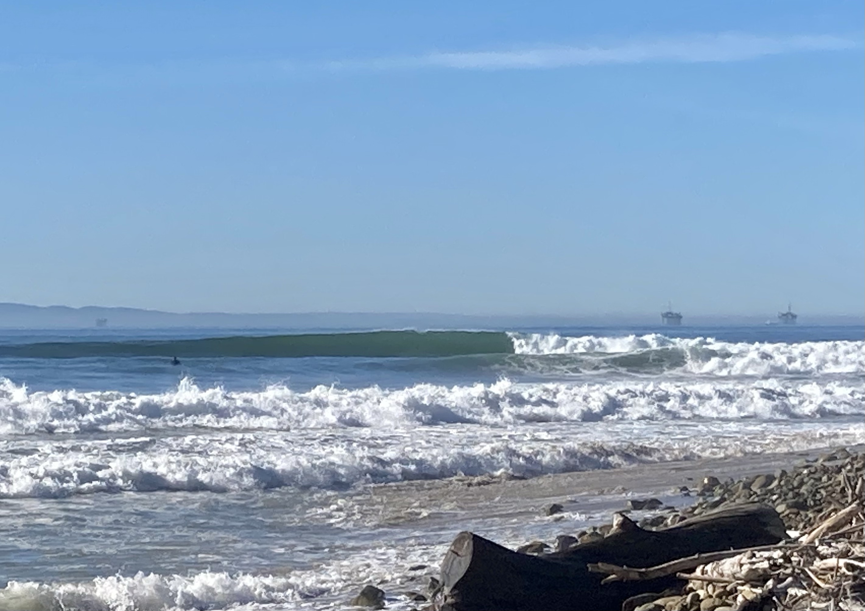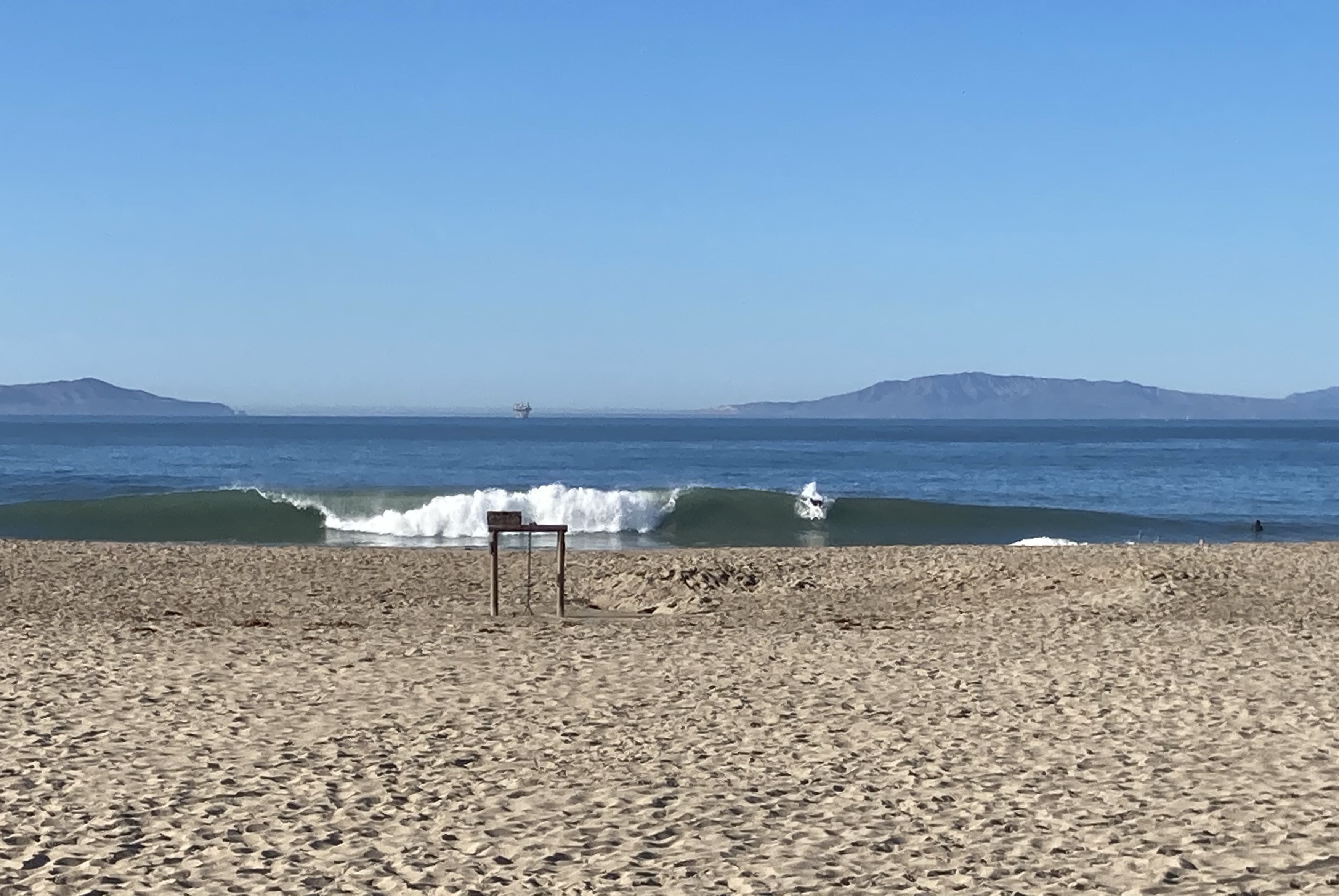 I woke up to some winter weather and soke steep short period NW swell on the buoys. All signs pointed to Strand and that was where I found myself, at the Ship watching broken up chest plus peaks up and down the beach. It was all mixed up and all over the place. The crowd was light, my time was running out and I couldn’t think of anywhere else to go. The bulk of the pack was in the bowl. I saw a few sets off the Ship and paddled there. My first few waves were real winners. But as my he tide dropped and the onshore winds slowly creeped on it the conditions steadily began to deteriorate. Then three guys came out and sat on me. My time was up anyway. It was marginal at best, but I had fun. The rain held off and it was sunny for my surf so my wife could enjoy the beach. The rest of the day was spent at the post office where I was sent out to the Ojai main office for a Covid cleaning. Fun times.