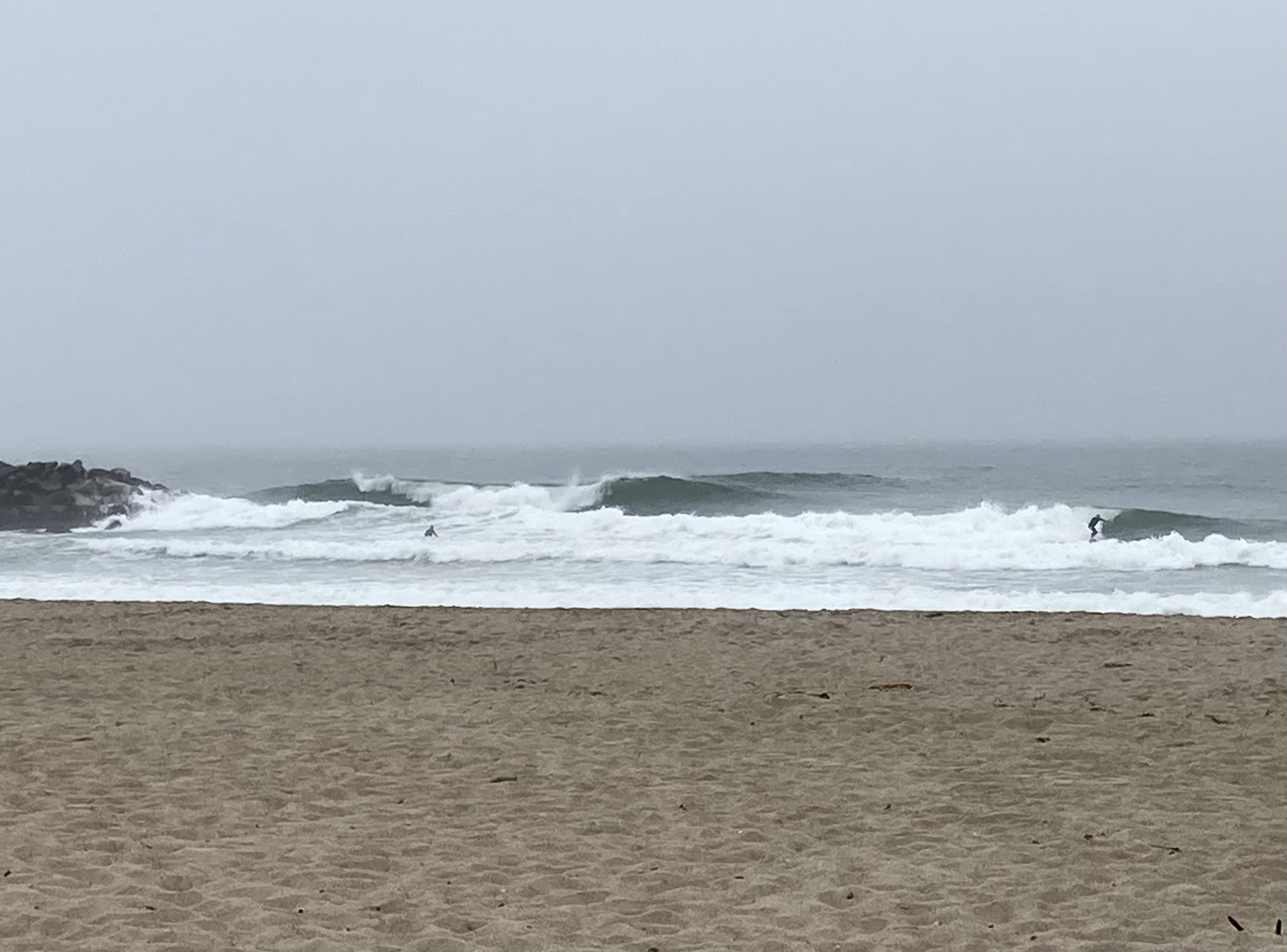 There was a serious drop in the swell from yesterday. That plus the drained out early morning low tide less things a bit to be desired. At the very least it was clean and there were some waist plus south lines filtering in. Jeffery was already out and Angers and I joined him. That was the entire line up for our whole surf. It’s very rare to ever surf clean Harbor with no one out these days, shoots even messy Harbor gets a crowd at times. My first three waves were absolutely magic. I got a screamer right I hit a nice air on. Then I stroked into a left that I somehow managed to pull through a sick little tube and finally I picked off a left that I stuck a sizable ally-oop on. After that the wind came up a little bit out of the south and the tide bottomed out. There were still some fun ones but overall it got rather grovelly. Still I had fun and have certainly surfed it a lot worse out there. Plus the water warmed up a great deal from yesterday. The rest of my day was spent at the Post Office.