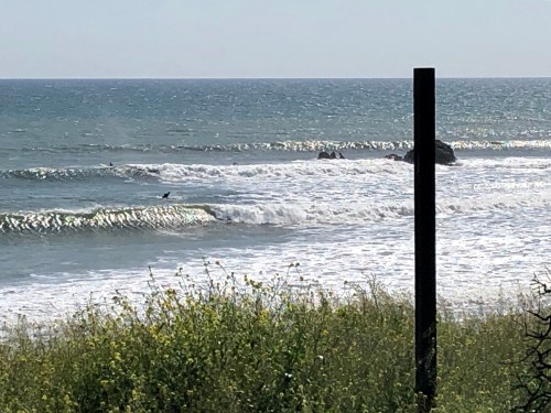 I had not expected anything much less a small bump in the afternoon. The buoys kept growing exponentially all morning. The wind was south and tide on the rise. I headed straight to the harbor. It was crowded and very brown there. The shape was a bit to be desired as well. With nothing to lose I decided to take a chance on the Strand. Though a bit fat there were some solid chest plus sets with no one in the ship side of the bowl. There was also a whale chilling just 20 yards from the shore line. Stoked I began finding some really fun lefts and rights. Then Robbie came out and some head plus sets began rolling through. Then Phil and Carlos paddled and of course the wind wasn’t far behind. At that point things began to fall apart and since the water was freezing as was my girl chilling on the beach I decided to bail. After some lunch we headed to Ojai for a little bird watching.
