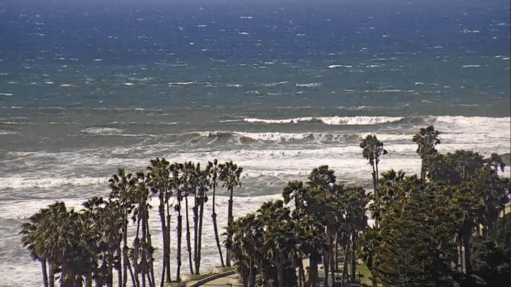 We awoke at 5:30am in preparation to catch a 10:30am flight out of LAX to go visit my folks in Jupiter Florida. Normally we just take the PCH all the way to the airport but thanks to the Palisades fire it’s closed shortly after the Malibu Pier. With that route impassable my wife and I were forced to endure the torturous 405 at the cusp of morning rush hour. What in theory should only be an hour and twenty minute ride could take up to three hours. LAX is always a mission. We got there in plenty of time and Coconuts our pilot as he referred to himself, got us there safely despite taking off in pouring rain and landing in heavy wind. We grabbed a rental car and headed to my parent’s home. It only took a moment to get settled before the four of us went out for a nice Italian repast. As far as the surf goes it was just rainy and small in Ventura. I didn’t miss too much. Photo from the Ventura Point cam.