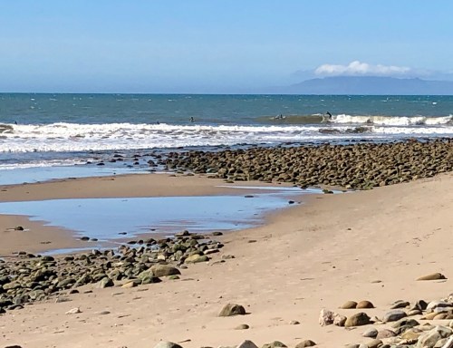 I had to work the morning shift at the old folks home after which I headed south in search of some new wind swell on the buoy. I found myself looking at average at best Emma Wood with a crowd on it and more guys changing. Then I checked New Jetty, which was equally uninspiring. On a whim I decided to play the Hail Mary and have a look at Strand. I figured worse case scenario I by the time I got back to Emma some of the crowd may have died. As luck would have it there was a high tide bowl at the ship with one guy out. There was a bit of wind on it, but the faces were clean. Stoked I hit up Robbie and we got a fun little shore breaky session. I managed two really fun little tubes. Really the true stoke was sharing fun waves with just my bud. A feat that is rare in California these days.