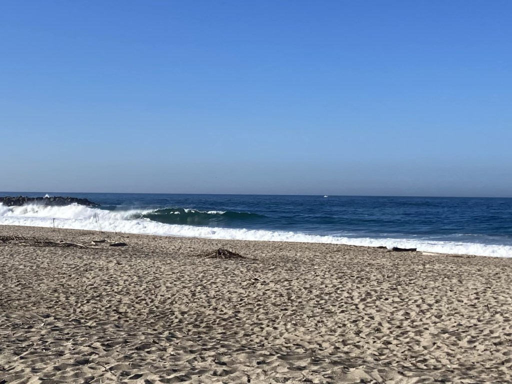 The NW swell had just about completely dropped off as my morning Strand check had confirmed. There was some minor south in the water and the tide was mid to high. All signs pointed to Hueneme. The Pier was pretty closed out but I saw some peaks down at Rockside and headed there. The shape was decent but surf overall small with inconsistent sets. I found a peak to myself and made the most of the meager conditions though definitely was as frothy as I could have been. My wife played hooky from work and hung out on the shore and enjoyed the nice fall morning. It’s funny how fall just came in like a light switch. Hopefully so will the NW swells.