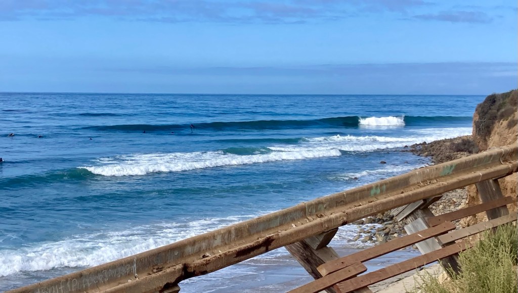 Somehow we successfully made it to San Diego with Adagio in tow without any baby meltdowns. When we woke up we got my wife’s mother situated with the task of watching Adagio. Then my wife went on her way to her party and I decided to cruise to Blacks Beach and see if I could find a wave. The Narda swell was just starting to show and there was also some NW wind swell in the water. I got down there and it was chest plus with clean lines. The bulk of the crowd was surfing way to the north. There were a handful of guys sitting in the middle of the beach where the lifeguards set up. I found my own left down closer to the access ramp. Most of the waves were a little bit stretched. I managed to get out in front of a few and turn them into something. I must have made it look fun enough considering six guys proceeded to paddle over and crowd me. Even then I managed a couple of solid airs. The wind came up and put too much chop on the face to the point that I could no longer get through the racy sections. I had a look at the La Jolla reefs after my surf but the Narda swell still wasn’t showing enough to light any of those spots up. I headed back to Chula Vista to check on my son. I had the realization that Chula Vista is a San Diego version of Oxnard. I cooked up a superb repast of Chicken Piccata in gratitude for my mother-in-law watching my kid. Tomorrow my wife and I cruise into Baja
