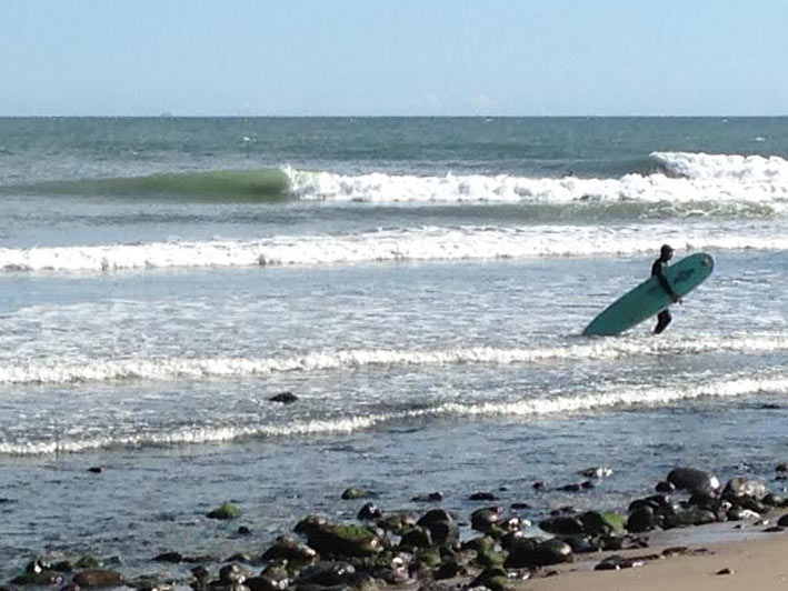 I decided to play surfing roulette again this morning. This time at Little ‘Con. I noticed a bit more west on the buoy then yesterday and La Conchita was solid. Ryan said New Jetty was not really worth the drive and Trevor was at Emma again. I was headed that way when I decided to just have a quick look at Little Rincon. As I pulled up a saw two chest high waves roll through the line up clean and pealed. The tide was pretty high, but it was definitely do-able. No one was out and there was real potential with the dropping tide. I debated for about fifteen minutes before finally paddling. After all I saw a handful of waves that were at least ride-able. With no one out I had my pick of the litter. I jumped in and it was a little close to the molar rock. Although a bit slow between sets I was getting at least three to five solid hits on every wave and every now and then found one that opened up all the way to Mussel Shoals. Little ‘Con is a bit of nostalgia for me of the jetty breaks I left behind in New Jersey. I have always surfed the place well. Its funny to get a spot like that all to yourself when two months ago on days ten times worse the what I was enjoying it would have been mobbed. Got to love the late season.